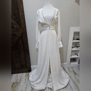 Sachin & Babi Britt Plunge A-Line Gown NWOT size 8 Ivory/White