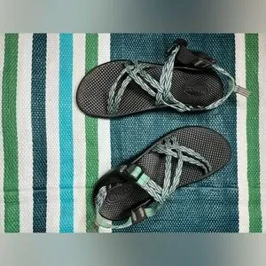 ✨🎉 Chaco ZX2 Strappy Blue Green Diamond Zigzag Pattern Outdoor Sandals Size 6