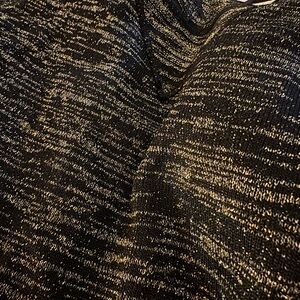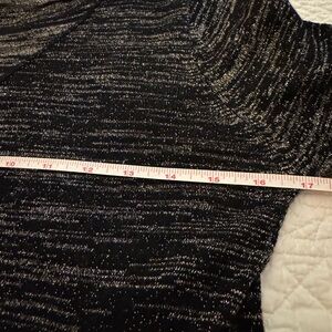 This is a Zara long sleeve black dress with metallic thread knit throughout in a random, horizontal pattern.