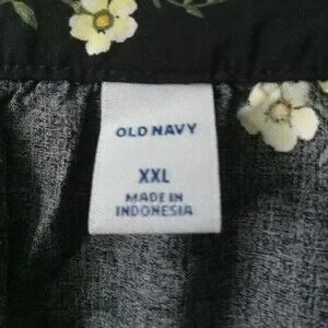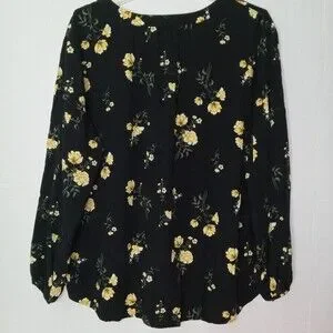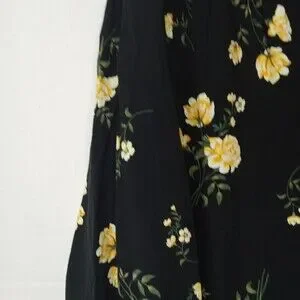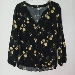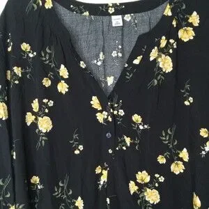 Old Navy XXL Top Black Yellow Floral Print Popover Shirt