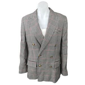 NEW LAUREN Ralph Lauren Black Linen Plaid Double Breasted Blazer Coat Jacket 10