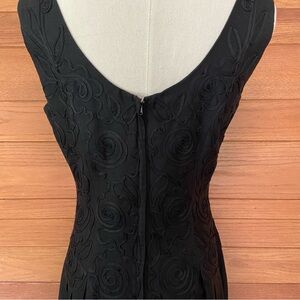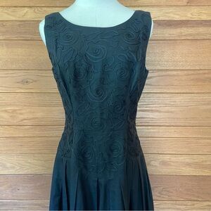 Vintage 80s 90s Sarah Elizabeth black cotton blend pleated soutache bodice midi dress. Size 6.