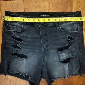 Sincerely Jules Distressed Black Denim High Rise Jean Distressed Shorts Size 9 Whimsigoth