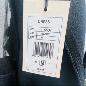 GENEVIE Black Mini Dress Gold & Sheer Bell Sleeve Dress NWT Size Small Medium