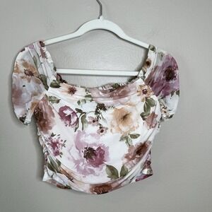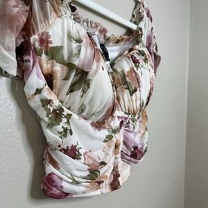Women's Crop Top Bustier Windsor Y2K Fairy Renaissance Floral Whimsical Mesh L