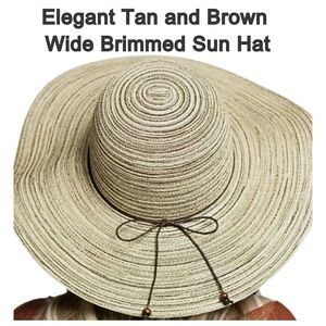 Elegant Tan and Brown Wide Brimmed Sun Hat
