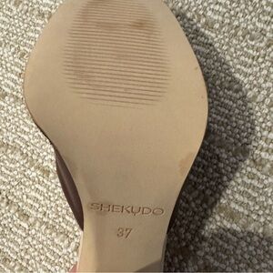 Shekudo Cuzco Hickory Brown Leather Block Heel Sandals | Size 37 / US 7. In excellent condition!