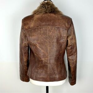 Vintage Toni Brown Shearling Leather Jacket Fur Collar Buckle Detail Quilt inner