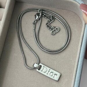 Vintage Dior Silver Chain Necklace with Logo Pendant