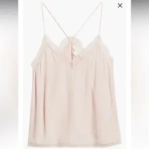Chic blush cami with lace detailing. Perfect for layering or standalone wear.