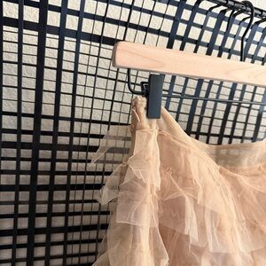 Features: Pull-on design, tiered tulle ruffle trimming, partially lined