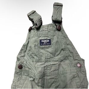 Oshkosh B’gosh Green Khaki Overalls Plaid Lining Size 18-24 Months