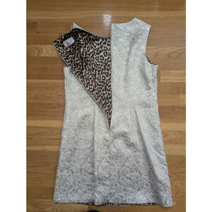 Roulette Brocade Shift Dress Cream Gold Size 12 Leopard Lining