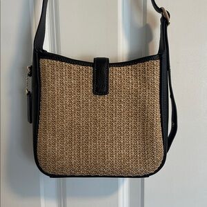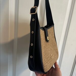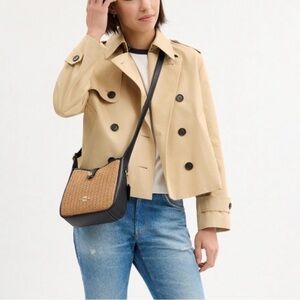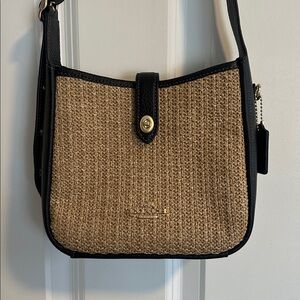 NWOT Coach Hadley Mini Crossbody Bag in Raffia Tan & Black Leather