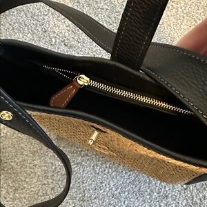 ✔️Black leather and tan raffia