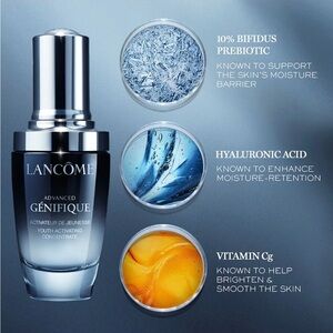 Advanced Génifique can be used with any other serum. After cleansing and toning, apply Génifique hydrating serum first before other serums. The silky, light-weight formula easily and quickly absorbs into the skin.