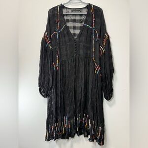Zara Black Bohemian Sheer Midi Dress size L