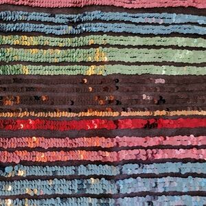 Excellent pre owned condition Anthropolgie womens Moulinette Soeurs multi color sequin striped skirt. No loose or missing sequins, totally lined. This is an eye catcher for sure and stunning.