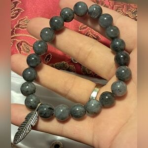 Labradorite Beaded Bracelet W/ 925 Sterling Silver Feather Charm.