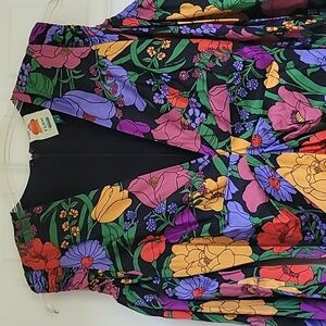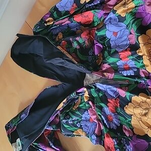 Featuring a bold floral print, dramatic puff sleeves with cut-out shoulders, and a flattering silhouette