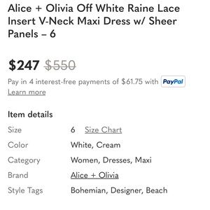Alice and Olivia is a very high end Boho line. This dress is more traditional and could be used as a wedding dress or a bridesmaid dress or for a garden party or vacation/holiday/special occasion of any kind, even Valentine’s Day. It would look great with a triangular shawl that is oversized! And due to the length, you could wear a flats if you’re tall or you can easily adjust it to be shorter for you and wear whatever kind of shoes you want to wear!