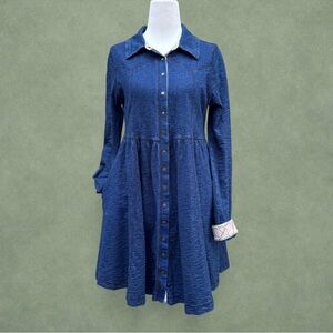 Chic indigo dress with button-up design. Ideal for casual wear.