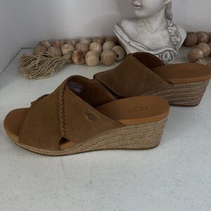 UGG Taia Wedge Slide Sandals - Suede (For Women) Chestnut Sz 8