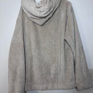 Stay warm in this cozy beige fleece hoodie. Features a convenient half-zip and front pocket.