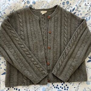 Vintage J.Crew 100% Wool Shetland Chunky Cable Knit Gray Boxy Sweater Cardigan M
