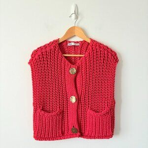 Zara Sleeveless Cropped Knit Sweater Vest Red Blogger Fav Size Small