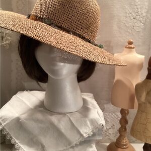 Natural Straw Women’s Summer Floppy Hat/ Distressed Coin /Beaded Charm Band