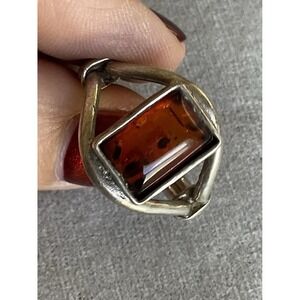 Vintage 925 Sterling Silver Amber Gemstone Ring Size 8 Estate Jewelry