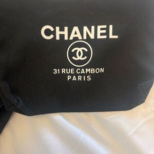 CHANEL beaute Black and White Logo Tote gift bag w makeup tote BN. Canvas. Pair