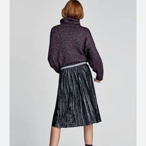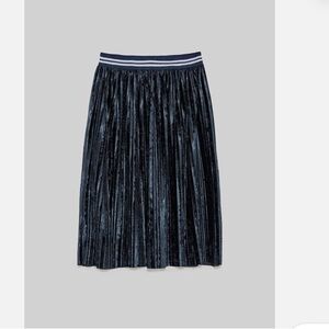 NWT Zara PLEATED VELVET SKIRT MIDNIGHT BLUE SZ M