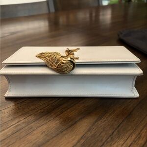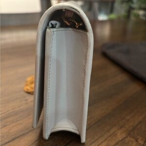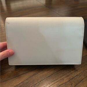 YSL crossbody small bag in good condition. Color is described as “icy white” but it’s more of an off-white with gray undertones. Some minor scuffing of the bag only noticeable in certain lighting and angles (as photographed). No stains of fabric, creases in leather, or rusting of the gold chain or logo. Can remove the chain to double as a clutch.