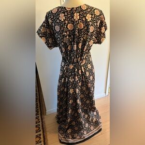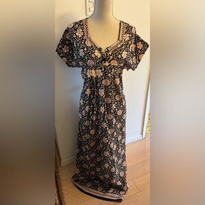 Vintage Indian cotton hand blocked floral boho maxi dress. V-neck and tie back.
