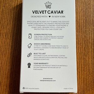 Protect your iPhone 14Pro phone with the stylish Velvet Caviar phone case. Featuring a sleek navy leopard design, this case combines elegance with durability. Protects against cracks and scratches. Designed to absorb impact for up to 8’. Has an antimicrobial coating. Brand new in original packaging.