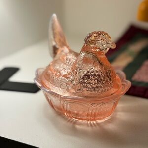 Vintage Fenton Pink Opalescent Hen On Nest