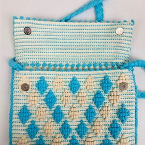 Antonello Tedde blue and white boho textured purse with braided strap.