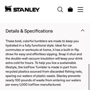NWT STANLEY 30oz Stainless Steel Iceflow Fast Flow Tumbler in azure blue. With box. Currently sold out on stanley.com in this color and size. Easy-to-carry handle, dishwasher safe, double-wall vacuum insulation, bpa-free