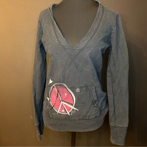 Mudd Women's Black V-Neck Hoodie with Pink Peace Sign