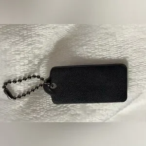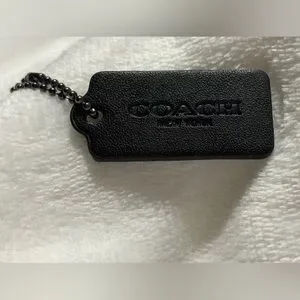 Elegant black tag with textured finish. Includes ball chain for easy attachment. Embossed Coach logo adds a touch of luxury.