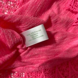 Decree Racerback Neon Pink Tank Top with Crochet Accents