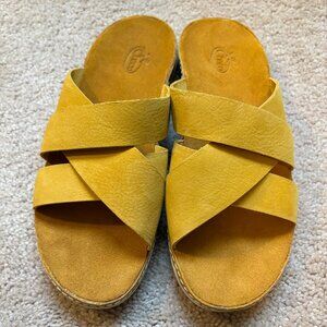 Only worn a couple of times. Your favorite Chaco footbed in a cute and casual leather slide. And how cute is that yellow color pop! Only worn a couple of times!