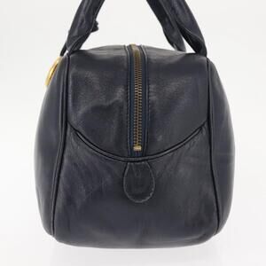 Christian Dior Hand Bag Leather Navy Gold Auth BA5820