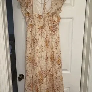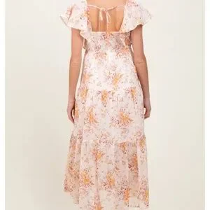 Pink Blush Peach Floral Flutter Sleeve Tiered Maternity Maxi Dress