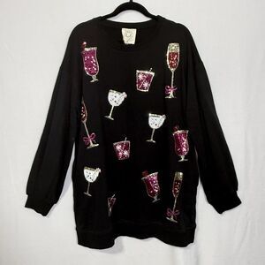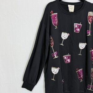 Fantastic Fawn Black Sequin Drink Applique Pullover Sweatshirt Mini Dress Size M