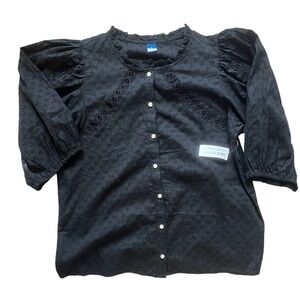Old Navy Women Black Puff Half Sleeve Button Down | XS