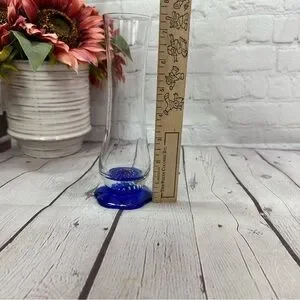 turandot blue glass vase Italian cobalt glass decor scalloped edge vintage vase clear and blue art glass handmade glass flower vase collectible European glassware elegant centerpiece vase retro glass home accent decorative vase made in Italy textured glass vase with dots