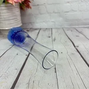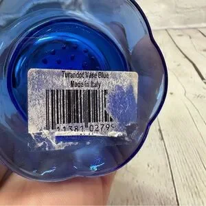 Add a splash of elegance to your space with this Turandot blue glass vase, crafted in Italy with a striking cobalt base and scalloped edge. The clear upper body features raised glass accents for added texture and charm. Perfect as a centerpiece or accent decor, this vintage-style vase blends artisan craftsmanship with timeless beauty.
